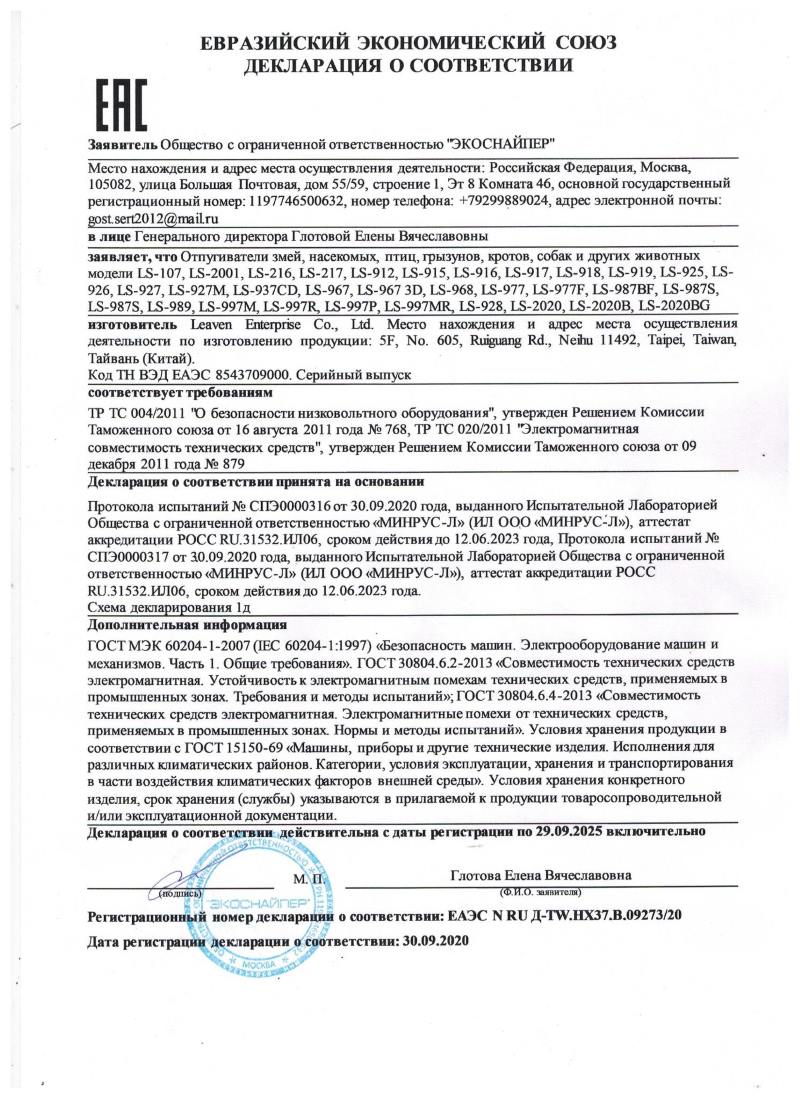 Правила пользования отпугивателем собак ультразвуковым «Экоснайпер LS-977S»
